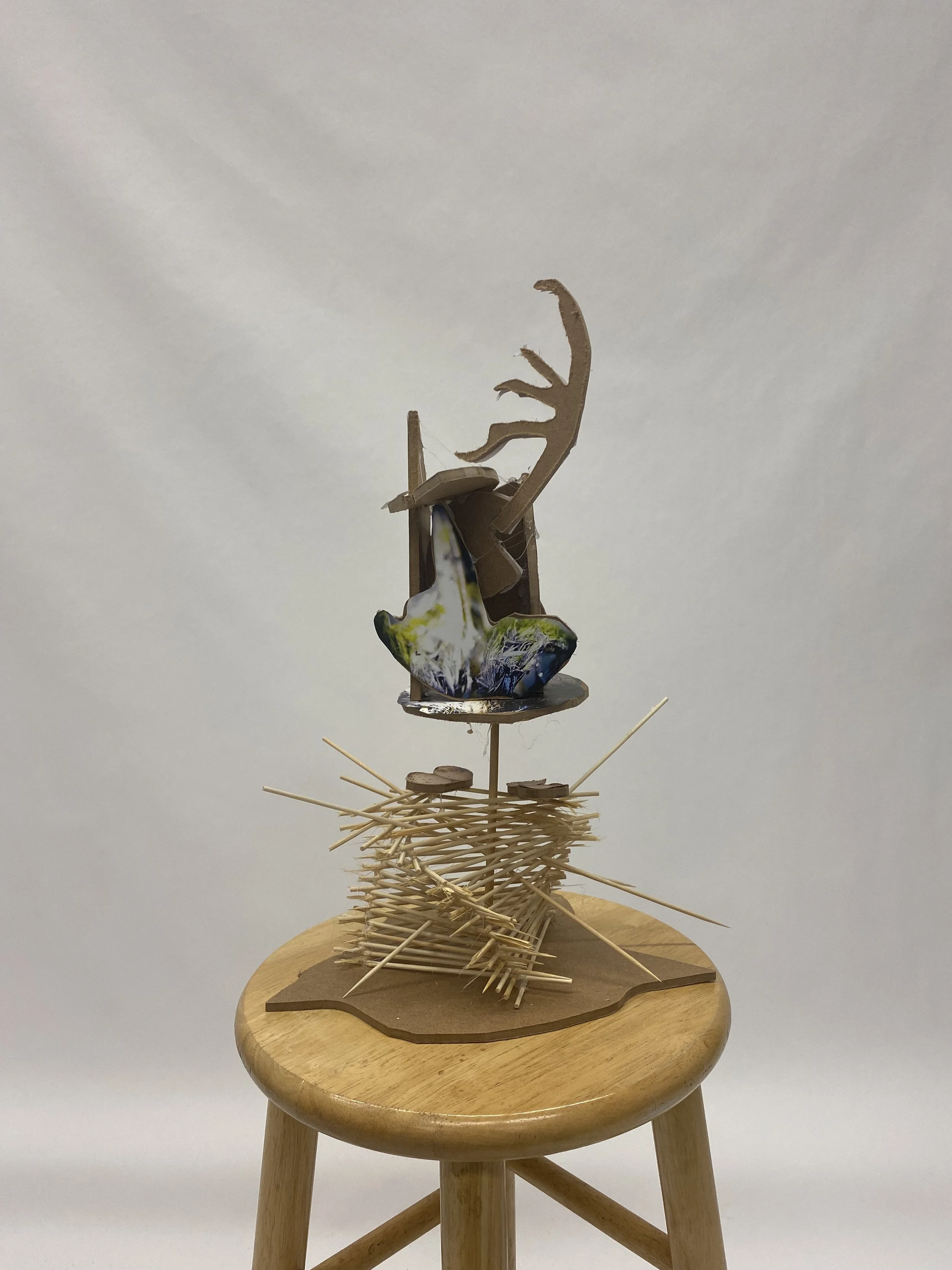 Birdhaus is a conceptual bio-art piece that spans across several mediums. Initially starting out as a photography series of microscopic shots of a deceased bird, a common sight on the streets of Newark due to pollution and low-visibility windows. This difficult fact of this urban landscape inspired me to interact with these photos as possible, utilizing them across mediums. The original photographs now exist as a wooden Birdhaus sculpture, and a glass casting of a 3D model of the original photograph.